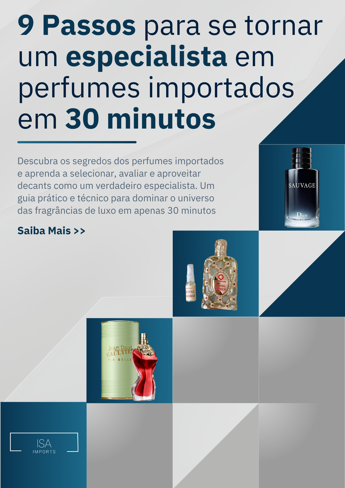 Com o Curso de 9 Passos para se tornar um especialista em perfumes importados em 30 minutos, descubra os segredos para dominar o universo das fragrâncias de luxo. Aprenda a selecionar, avaliar e aproveitar decants como um verdadeiro especialista. Adquira o curso agora e inicie sua jornada para se tornar um expert em perfumes importados.